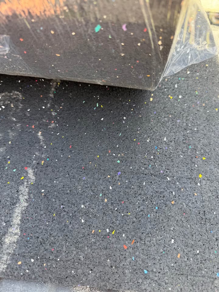 Brand new rolls 4x25’ multi color speck very beautiful color . Mostly gray speck this shipment looks really good 😊 Perfect for any home or commercial gym setup